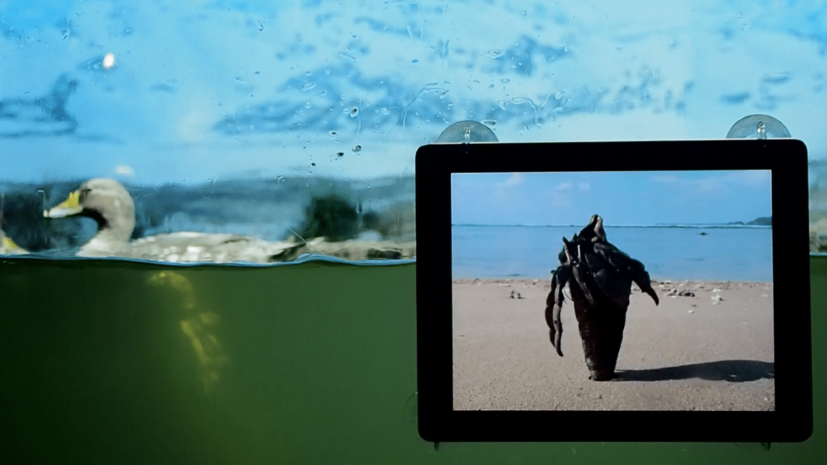The video »Hauskrebs 2011» of the artist August Blum (http://augustblum.ch/2010-f-hauskrebs.html) was installed at the penguin enclosure at zoo zürich.